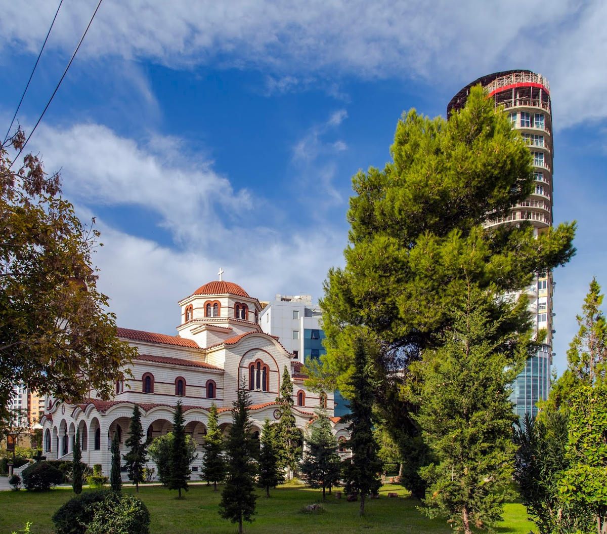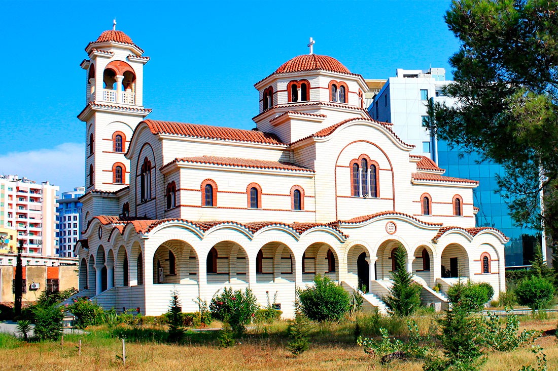 The church attracts tourists with its architecture, reminiscent of classic Byzantine basilicas. The height of the domes reaches about 18 meters, the bell tower rises to 19 meters. The facades are decorated with colored bricks and arches, the interior is finished with marble, and the carved furniture and iconostasis are hand-made by Albanian craftsmen.