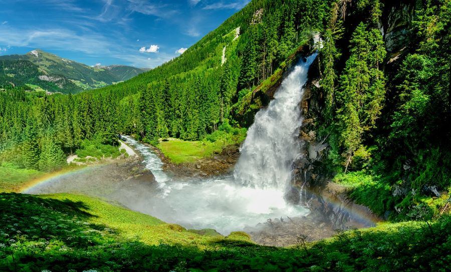 Krimml Falls is the fifth highest waterfall in the world, 380 meters of cascades (3 main and many small). This is one of the most striking natural attractions of Austria. The waterfall is located in the Hohe Tauern National Park, Salzburg. A powerful, beautiful waterfall, especially at the beginning of summer, when the level of meltwater in the Alps is at its peak. There is a walking trail along the waterfall. You can climb to the top of the very first cascade along it.