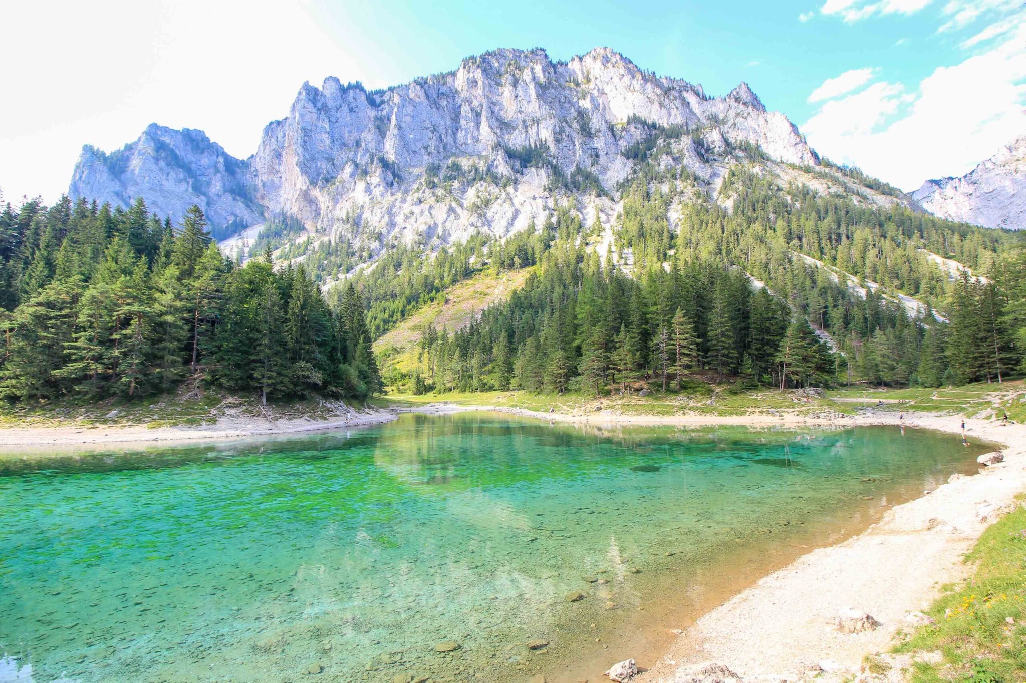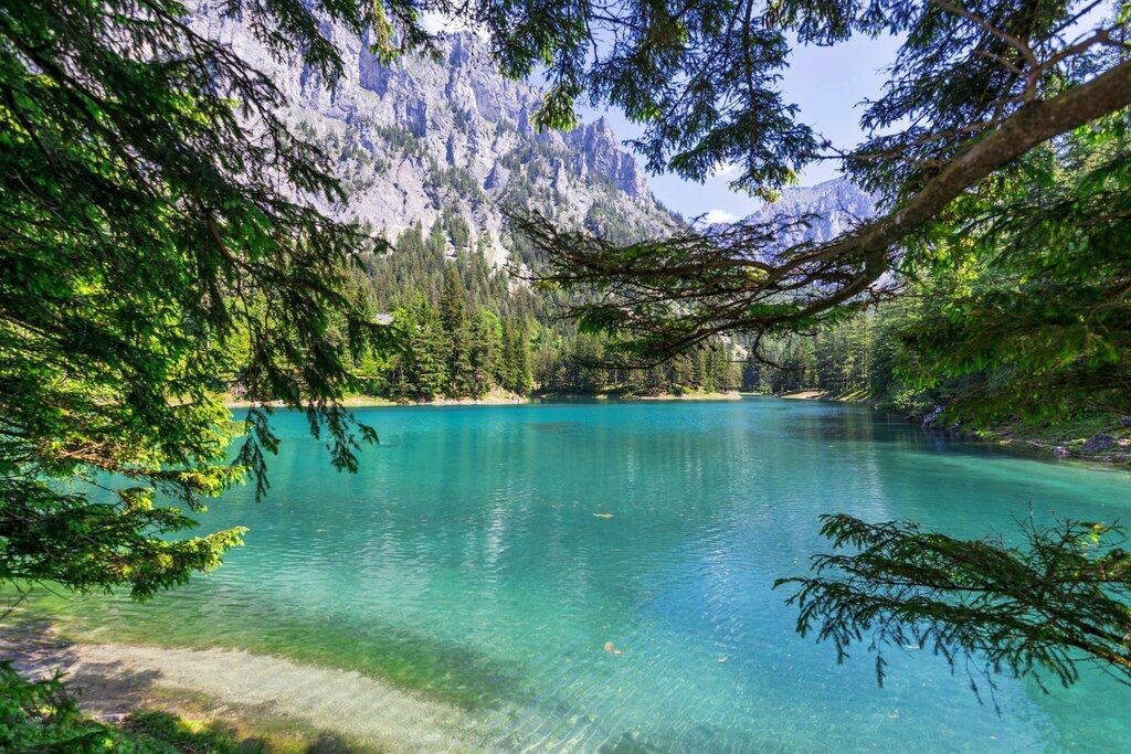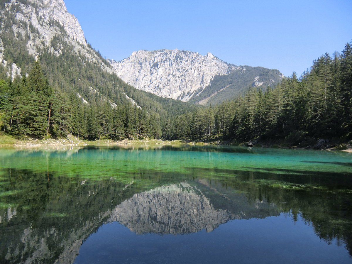 This is a very unusual emerald-green lake. In May-June, the green valley is filled with meltwater that flows down from the neighboring mountains and glaciers, and the green lawn turns into the bottom of a green lake The lake is 12 meters deep. Divers can sit on benches or swim over the hiking trails right under the water. Then the meltwater subsides and the lake remains only in the lowest part of the valley, with a depth of only 1-3 meters of very cold green water.