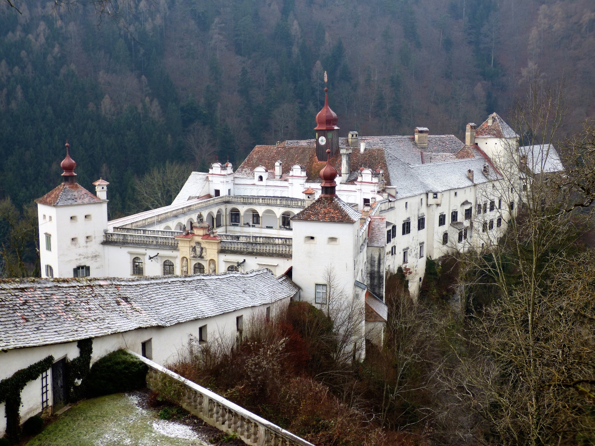 The castle rises above sea level by more than 400 meters. Translated from German, its name means Bitter Stone. A panoramic view of the mysterious gorge opens up from any point of the castle. The first mention of this amazing structure dates back to the 13th century. The uniqueness of the architecture lies in the diversity of styles. Experts highlight features of the Renaissance, Baroque and Gothic.