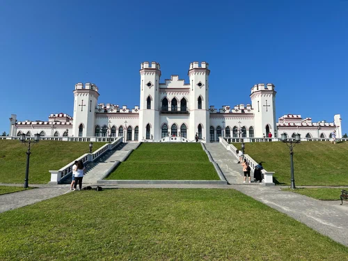 Коссовскому замку, принадлежавшему роду Пусловских, повезло значительно больше. Казимир Пусловский был богатым местным предпринимателем, который в 1838 году обзавелся собственной резиденцией. Весь архитектурный ансамбль пропитан неоготикой, а башни, будто у средневекового замка, придают этому дворцу уникальный вид.