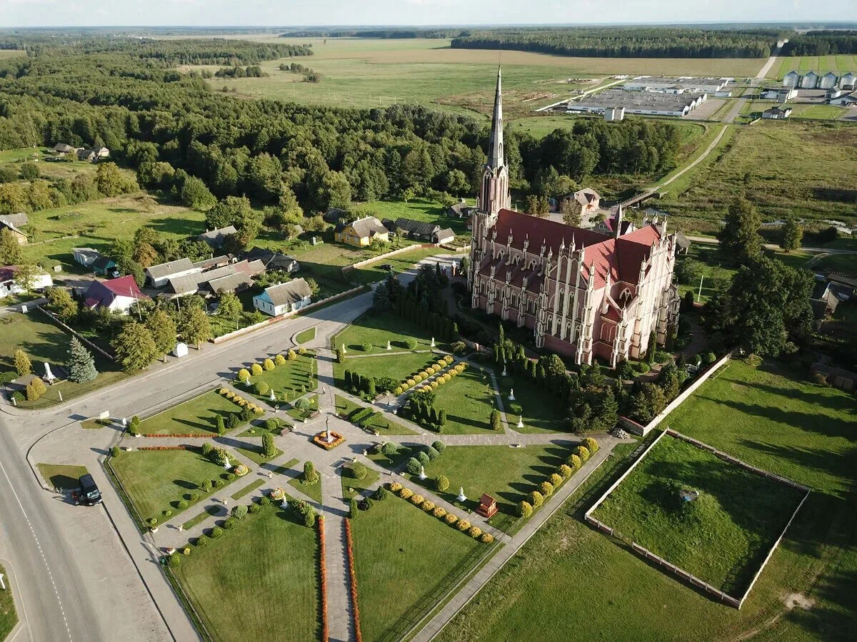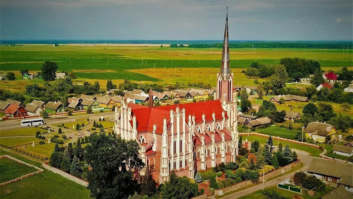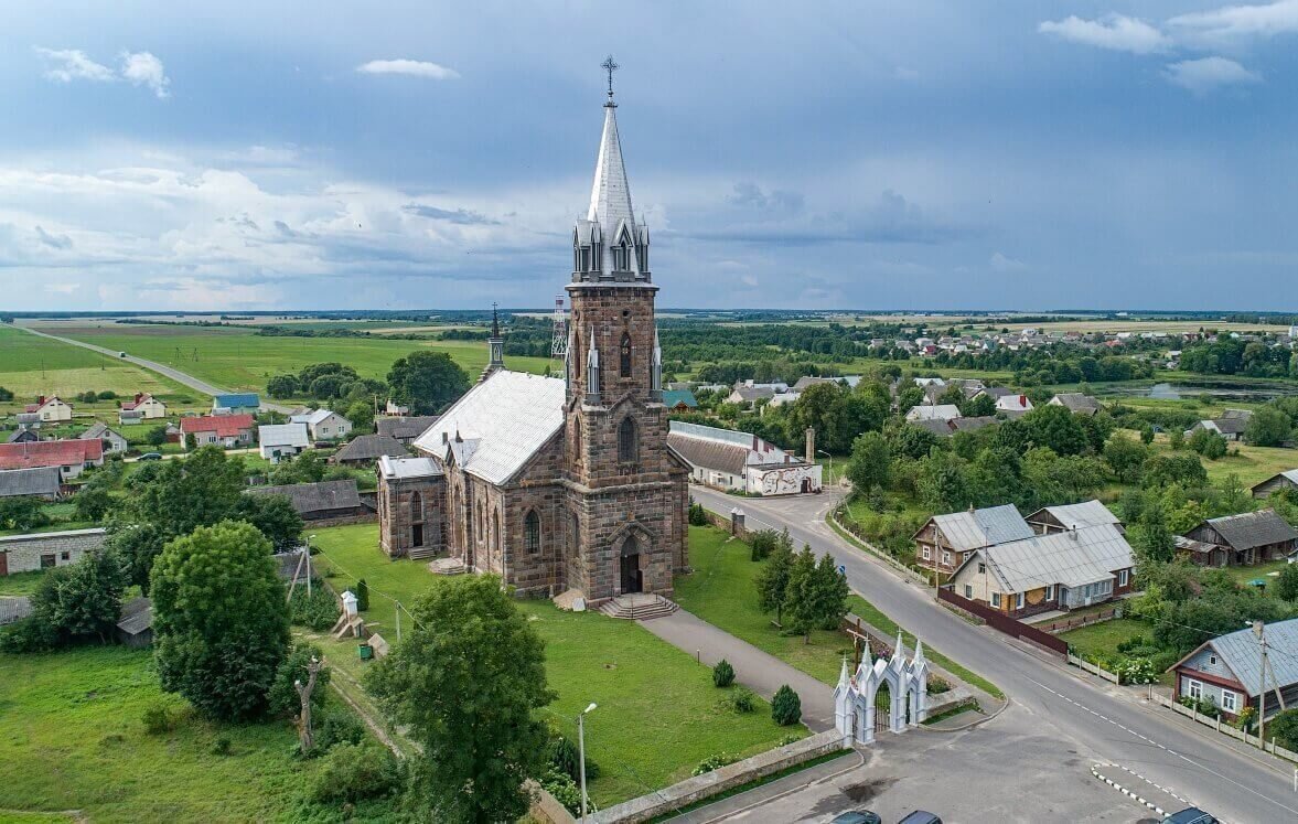 Глядя на этот храм, можно подумать, что вы находитесь где-то в Германии, а не в Беларуси. Первые католики в Гервятах появились ещё в начале XVI века, а вот большим храмом обзавелись лишь в 1903 году. Над строительством работали десятки местных крестьян, а некоторые материалы привозили из-за рубежа, в том числе из Германии. Что касаемо стиля, то это довольно типичный представитель неоготики для Европы, но совсем нетипичный для Беларуси.