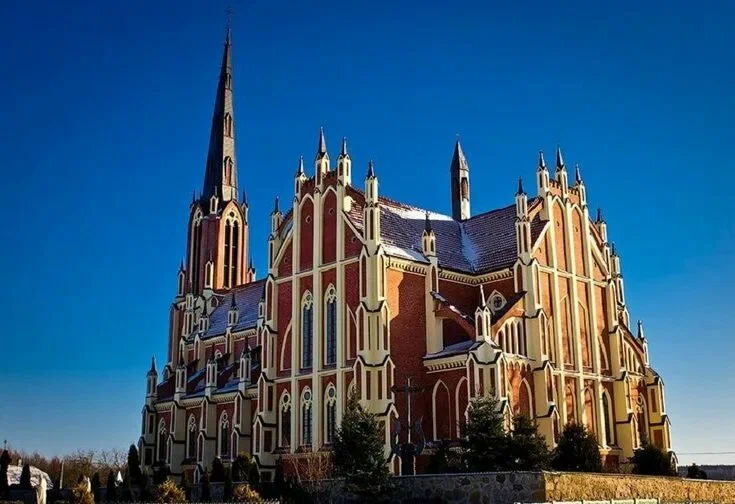 Глядя на этот храм, можно подумать, что вы находитесь где-то в Германии, а не в Беларуси. Первые католики в Гервятах появились ещё в начале XVI века, а вот большим храмом обзавелись лишь в 1903 году. Над строительством работали десятки местных крестьян, а некоторые материалы привозили из-за рубежа, в том числе из Германии. Что касаемо стиля, то это довольно типичный представитель неоготики для Европы, но совсем нетипичный для Беларуси.