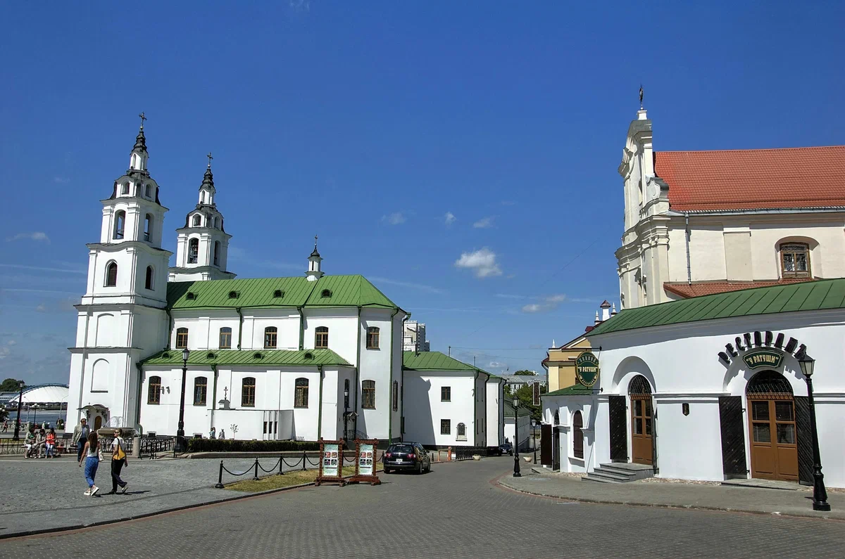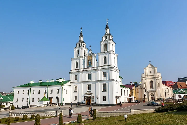 Главная православная церковь Минска находится на площади Свободы в Верхнем городе. Изначально местные земли относились к православному мужскому Космо-Дамиановскому монастырю. В начале 17 века польские власти передали территорию монастыря женскому ордену бернардинок, которые возвели здесь костел. Именно в этом здании сегодня располагается собор Сошествия Святого Духа. Перед собором находится смотровая площадка, где каждый может полюбоваться видом на город и послушать колокольный звон.