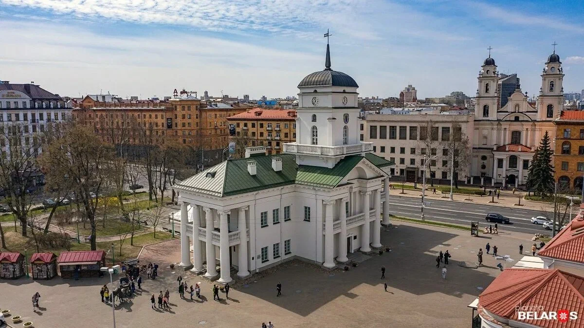 Еще одна достопримечательность площади Свободы — городская ратуша. Ее построили после того, как польский король и князь Великого княжества Литовского Александр одарил минчан Магдебургским правом. Башню ратуши украшают герб города и часы. Каждый час куранты отбивают припев из песни про Минск, написанной почетным гражданином столицы, известным белорусским композитором Игорем Лученком.