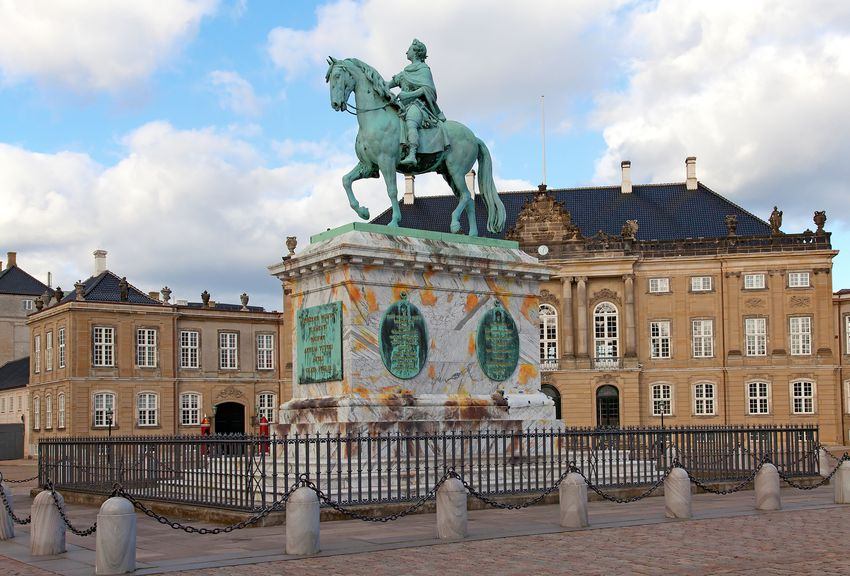 The architectural ensemble of Amalienborg consists of four mansions located around a square with a monument to the founder of the palace, Frederick V. The Christian VII mansion is used to receive royal guests and hold presentations, while the Christian VIII mansion houses the royal library and the museum of the Danish branch of the Glücksburg dynasty. The Frederick VIII mansion is used as a royal residence, as is the Christian IX mansion, where the now former Queen Margrethe II lives.