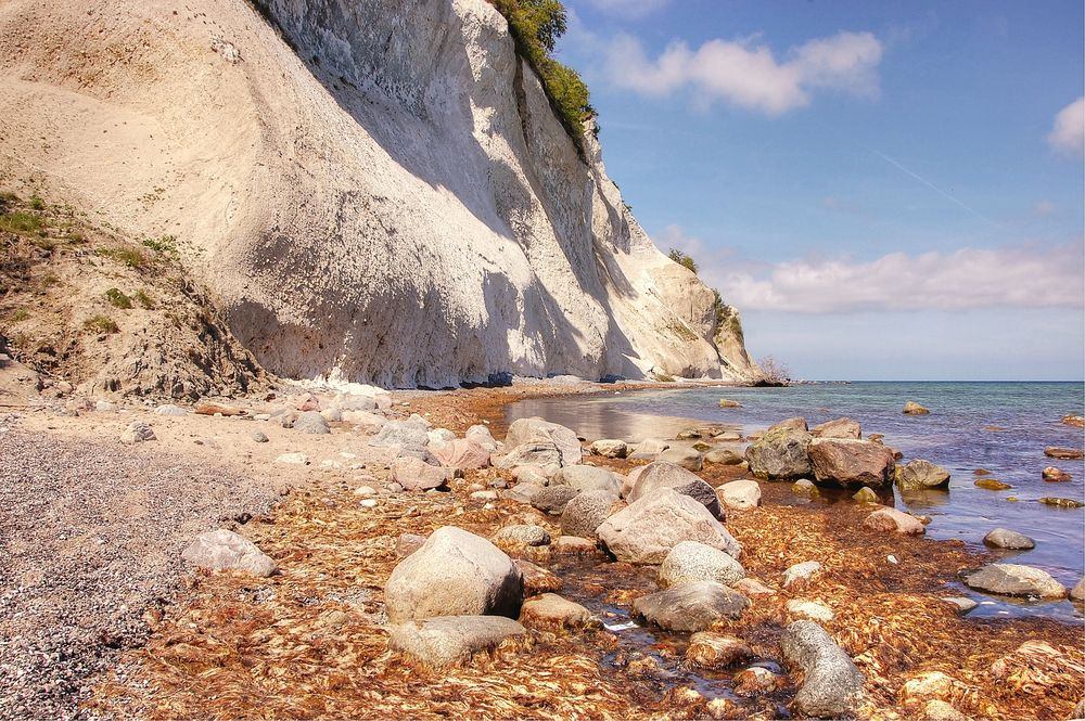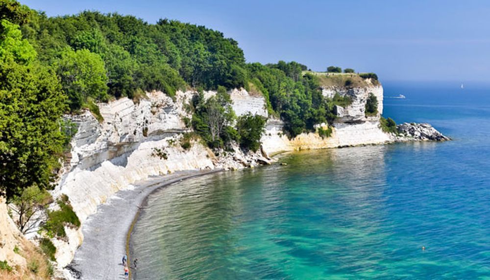 The White Cliffs on the island of Møn are one of Denmark's most impressive landscapes. The limestone cliffs stretch for six kilometres along the coast and reach 120 metres above sea level at their highest point. The cliffs are covered in forests, where you can find rare plants, such as more than 20 species of orchids. If you go a little further from the coast, you can find the Liselund Nature Reserve, which is ideal for hiking and cycling.