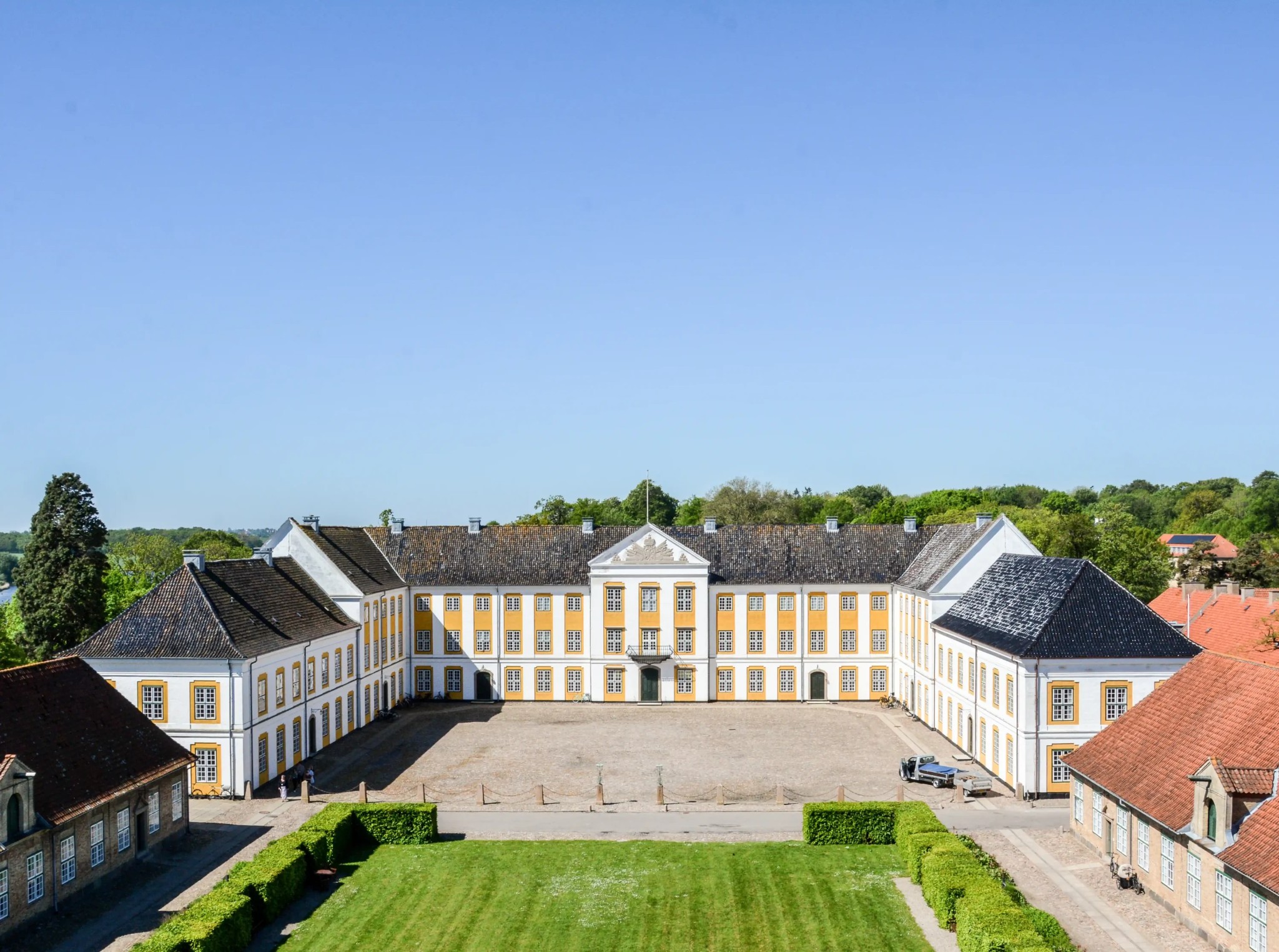 Augustenborg Palace is a Rococo-style palace in the southwestern part of Augustenborg. The largest room in the castle is the church hall, which dates from the late 18th century. Not visible from the outside, it covers the entire two-storey annexe of the north wing and is the successor of an older chapel, from 1671, which was demolished before the construction of the castle.