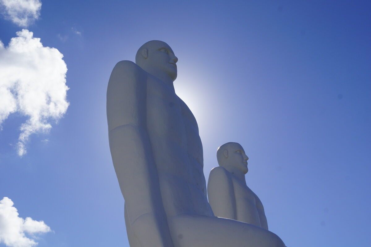 On the beach in Esbjerg on the southwest coast of Denmark stands a majestic monument consisting of four white sculptures of seated men. Each of them is nine meters tall. The monument was created in 1995 by sculptor Sven-Wiig Hansen. Now the monument greets and sees off all ships that enter or leave Esbjerg harbour.