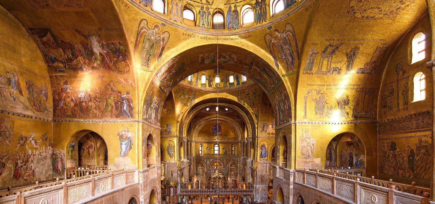 St. Mark's Basilica is the most famous church in Venice, Italy, and was the private chapel of the Doge. Built in the 11th century, it features a stunning blend of Byzantine architecture with its golden mosaics, domes, and richly decorated interior. The basilica houses the relics of St. Mark, one of the four Evangelists, and stands as a symbol of Venice’s historical wealth and religious significance.