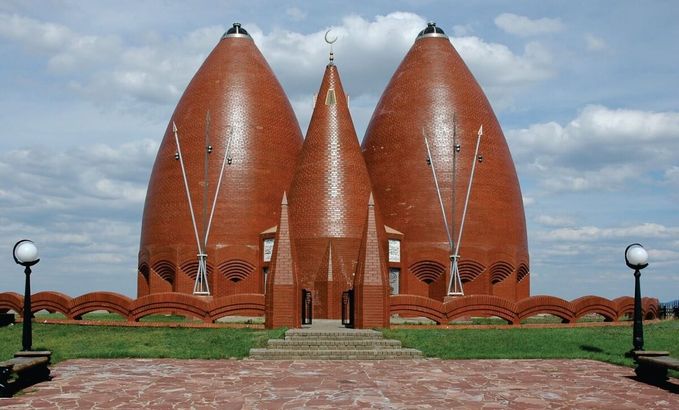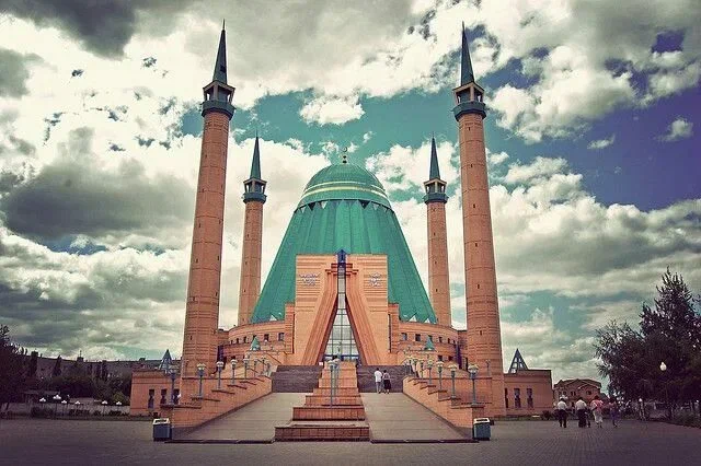 Одна лишь мечеть Машхура Жусупа стоит того, чтобы побывать в Павлодаре. Она была построена чуть больше 20 лет назад, поэтому архитекторы смогли позволить себе совместить традиционные элементы с современными решениями. В первую очередь в глаза бросается высокий купол небесного цвета, построенный в форме шанырака — купола юрты, что свидетельствует об уважении к традициям предков.