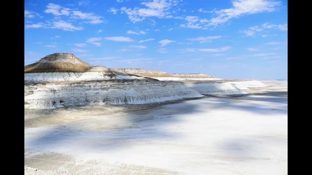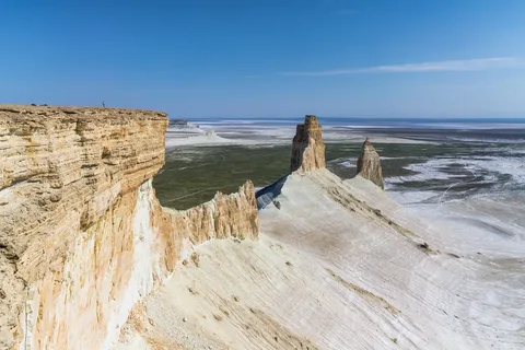 Плато Устюрт — огромная каменистая равнина, простирающаяся на территории Казахстана, Узбекистана и Туркменистана. А урочище Бозжыра, находящееся на плато, известно уникальными скальными образованиями и захватывающими ландшафтами, как из фильмов Кэмерона и Нолана. На плато Устюрт находятся несколько соленых озер, которые придают местности особую атмосферу.
