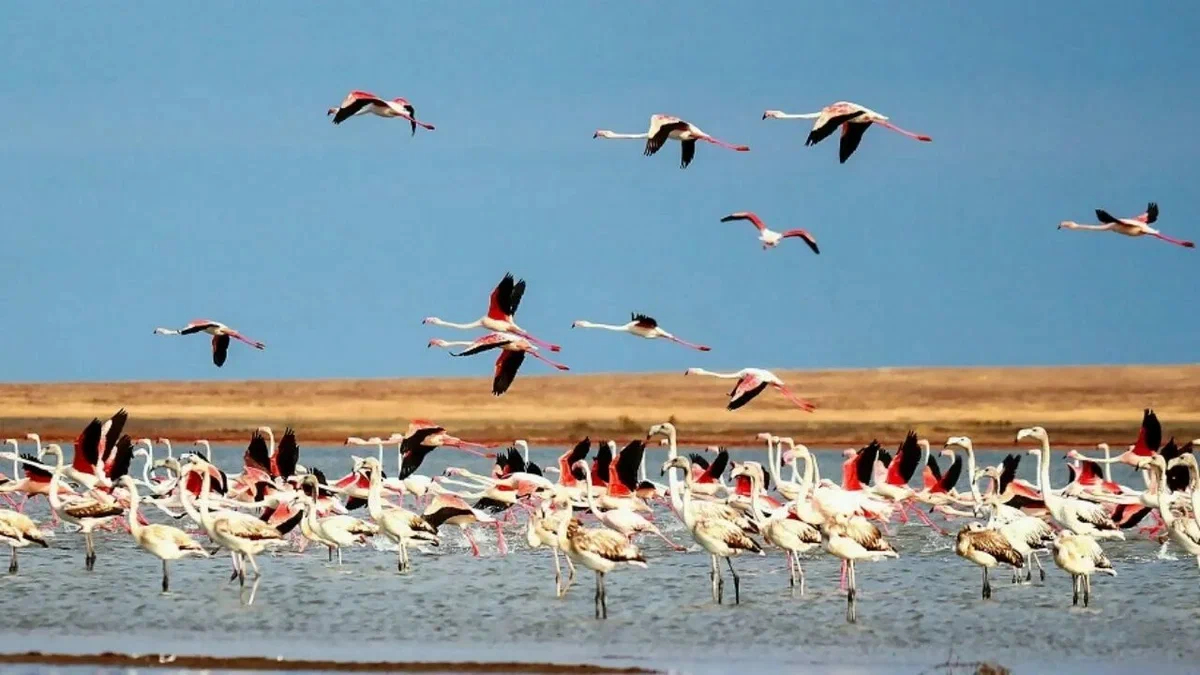 В 1968 году с целью сохранения дикой природы Казахстана в районе Тениз-Коргалжынских озёр был основан заповедник. Выбор места связан с миграционными путями птиц и многообразием флоры. На территории Коргалжынского заповедника произрастает 443 вида растений, из них пять занесены в Красную книгу Казахстана. Животный мир представлен 363 видами птиц, 45 видами млекопитающих и 15 видами рыб.