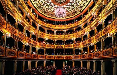 This gem of a theater was built in 1732 by a wealthy knight to provide entertainment for the troops, and has been open on-and-off ever since. Built in a Mannerist style on the outside and containing gold and gilt opulence on the inside, the main auditorium has a delicately patterned blue and gold trompe l'oeil ceiling and seats 623 audience members.