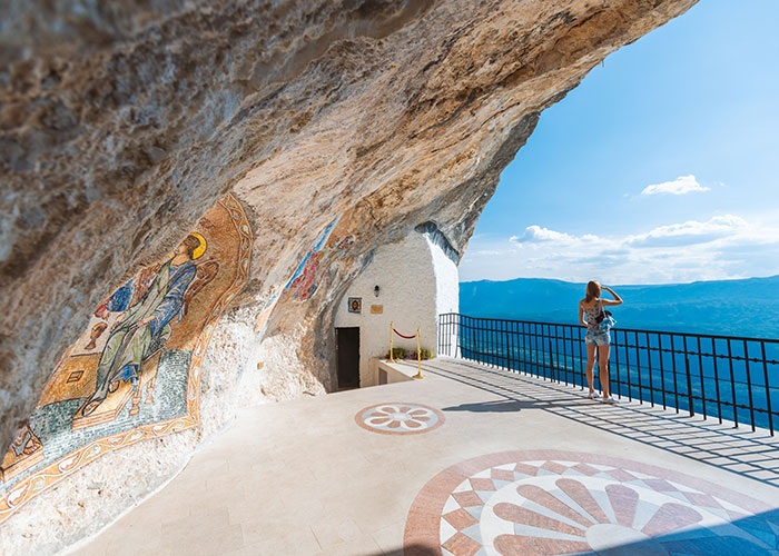 Also known as the Blue Grotto or Plava spilja, the Blue Cave is one of the most popular attractions on the coast of Montenegro. This huge cavern is carved directly from the rock, creating an opening big enough for boats, swimmers and snorkellers to pass through.