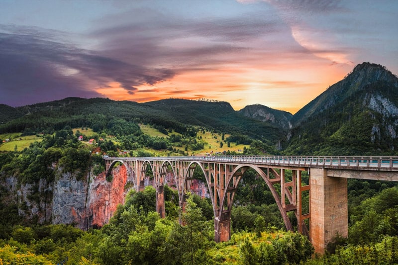 Part of Durmitor National Park, the Tara River Canyon is one of the largest and deepest canyons not just in the Balkans countries, but in all of Europe. The most beautiful spot along the gorge is Đurđevića Bridge. Constructed in 1940 when Montenegro was part of Yugoslavia, it was the largest concrete arched bridge in Europe at the time.