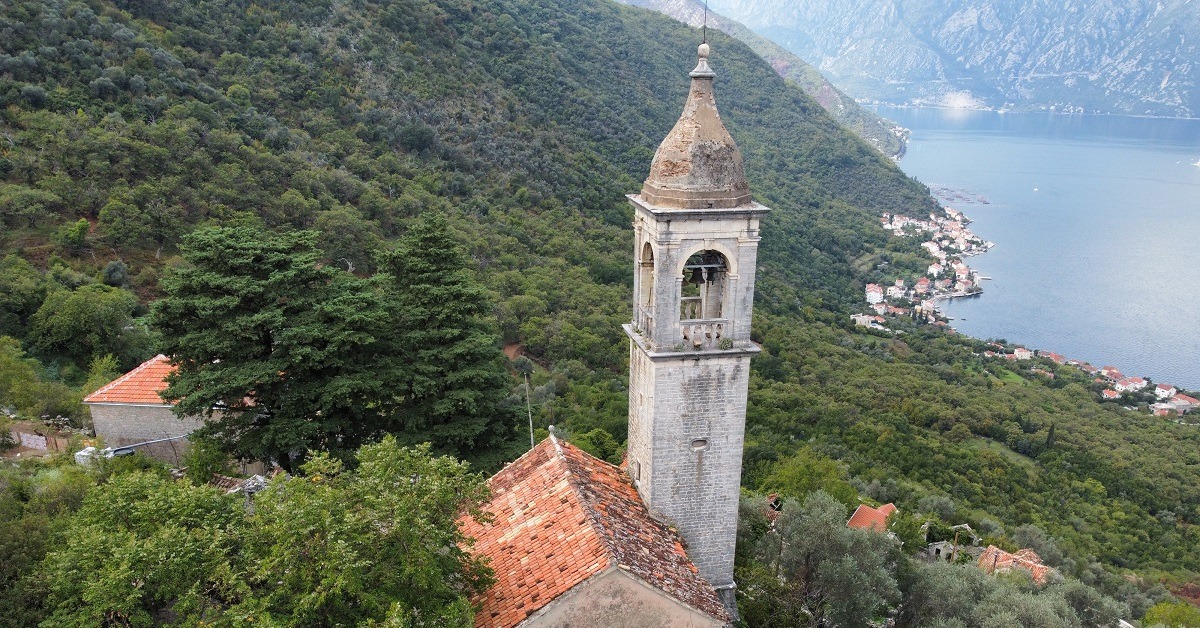 At 250 metres above sea level on the Bay of Kotor, the tiny village of Gornji Stoliv is easy to miss. The village is home to the parish church of St. Elijah, one of the Nine Sacral Objects in Stoliv. Thanks to its unique bell tower, built in 1883, it is considered one of the most beautiful churches in the entire Boka.