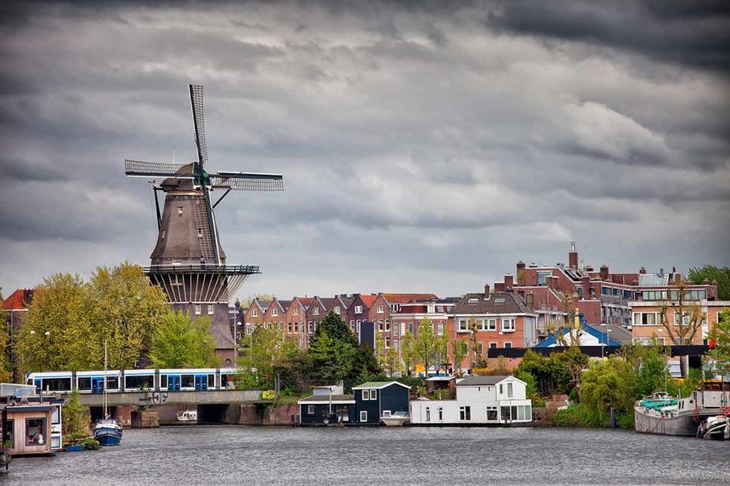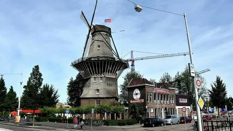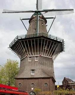 One of the most famous windmills in the Netherlands, De Gooyer windmill, dates back to the 16th century and is octagonal. The windmill served as a flour mill and was used commercially until the mid-20th century when it became a corn mill. De Gooyer was originally built from wood and is one of the last five remaining windmills constructed in a similar style.
