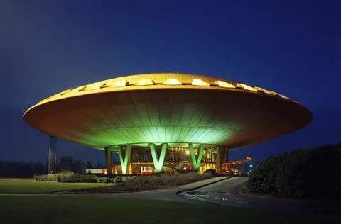 Evoluon was commissioned by technology company Philips in 1966. The building’s unusual UFO-style structure has made it an iconic landmark of Eindhoven. The building was designed with care by Frits Philip and required careful calculations to support the 77-metre concrete dome.