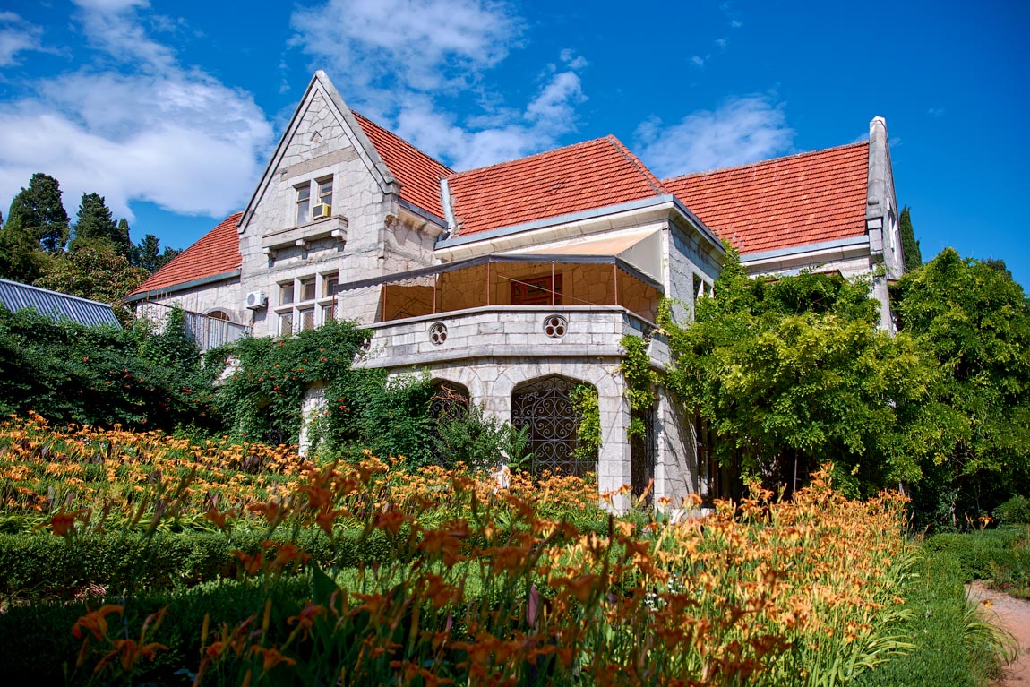 В парке мы рекомендуем посетить можжевеловую рощу и беседку «капитанский мостик», откуда прекрасно видно «Ласточкино гнездо» и Ай-Тодорский маяк. В 1869 году сын Николая I князь Михаил Николаевич приобрел в поселке Гаспра крупный участок, но к строительству долго не могли приступить из-за отсутствия водоснабжения. Когда проблема была решена, князь поручил строительство уже известному вам Николаю Краснову. Тот представил владельцу дом в стиле позднего модерна, очень напоминавшем дома в Англии и Шотландии.