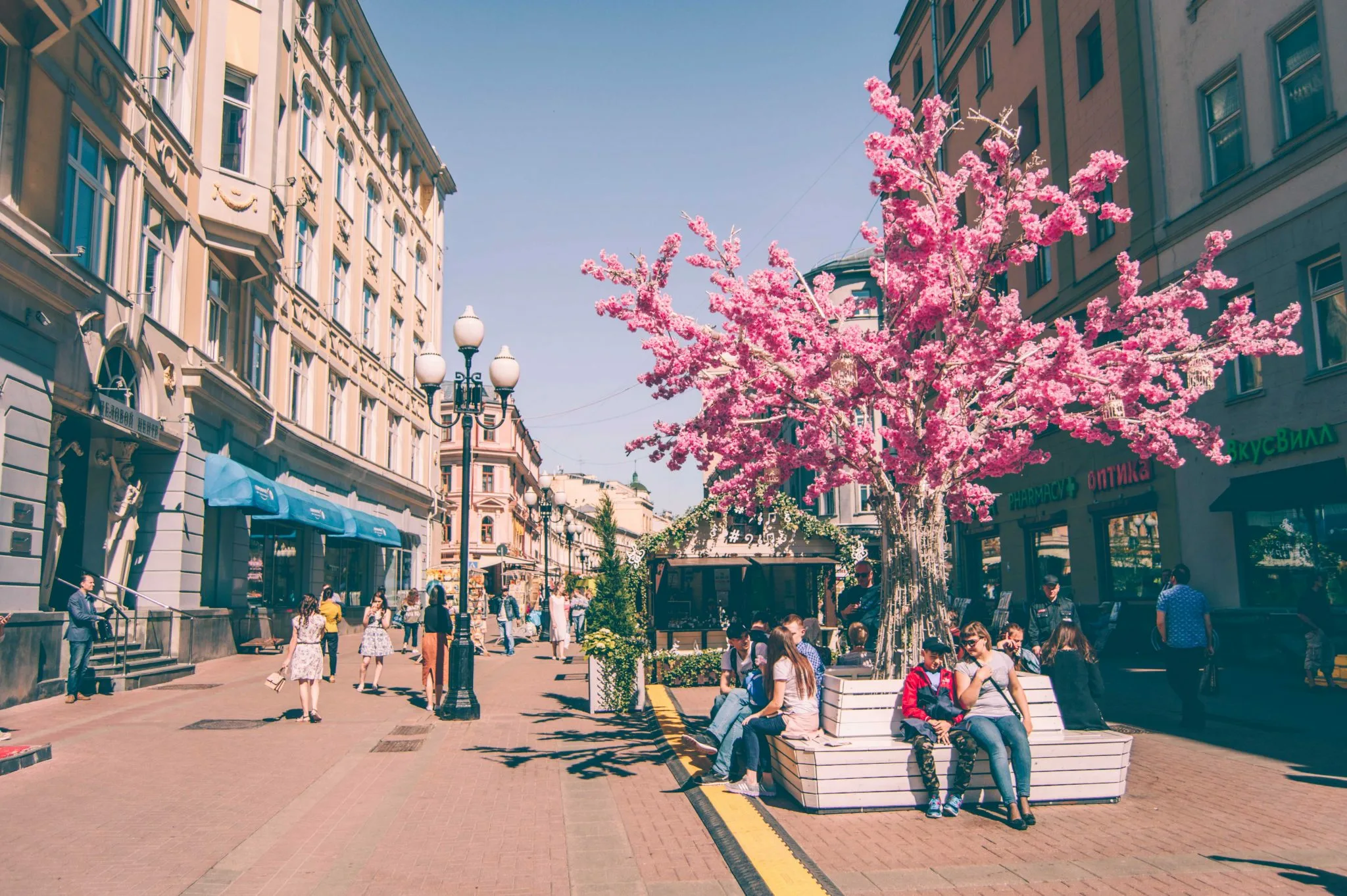 Арбат — самая богемная улица Москвы. Каждый дом на этой пешеходной улице имеет богатую историю и известных жильцов. На Арбате жил Пушкин сразу после свадьбы, здесь читали свои стихи Маяковский и Есенин, здесь провел свое детство «певец Арбата» Окуджава. Здесь же находится знаменитая стена Цоя, на которой поклонники творчества группы «Кино» оставляют свои послания.