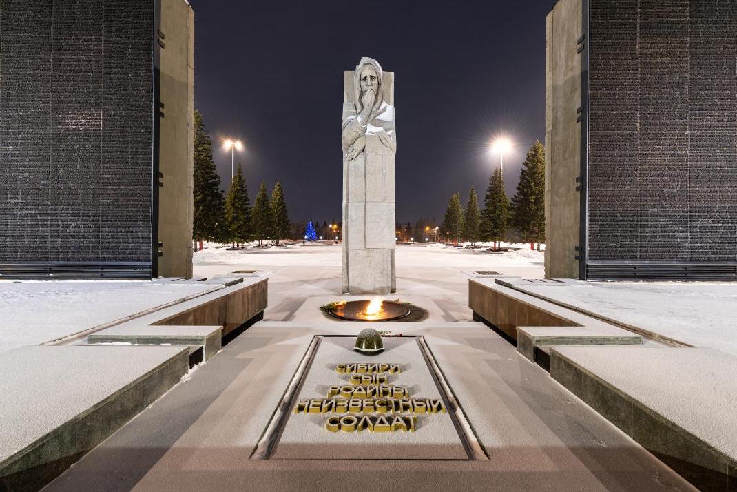 Памятник был открыт в 1967 году, а автором проекта выступил местный художник-монументалист Александр Чернобровцев. Посреди огромных пилонов с изображениями батальных сцен, стоит скорбящая мать, а рядом горит Вечный огонь. На внешних сторонах пилонов высечены имена 30266 новосибирцев, отдавших свою жизнь в борьбе с немецко-фашистскими захватчиками.
