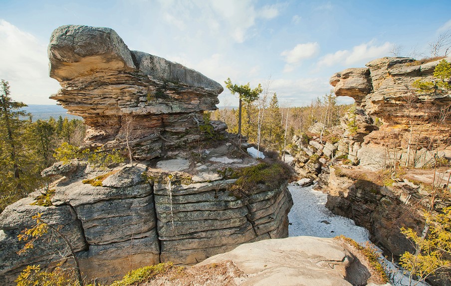 Посреди уральской тайги, на вершине хребта Рудянский Спой, природа создала настоящий город из камня. Гигантские скалы высотой с трехэтажные дома образуют улицы, площади и лабиринты, по которым можно бродить часами. Некоторые проходы настолько узки, что получили название «Собачьи пролазы», а в других, как на центральном «Проспекте», могут разойтись несколько человек. У каждого камня здесь свое имя – Черепаха, Пернатый Страж, Крыса, Тюлень.