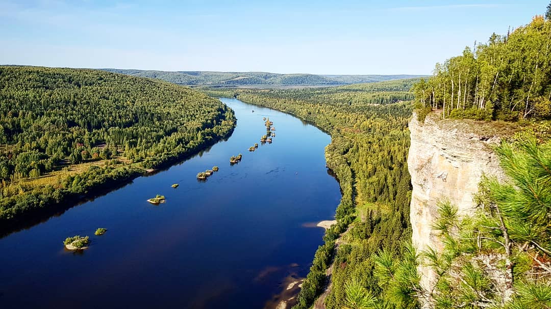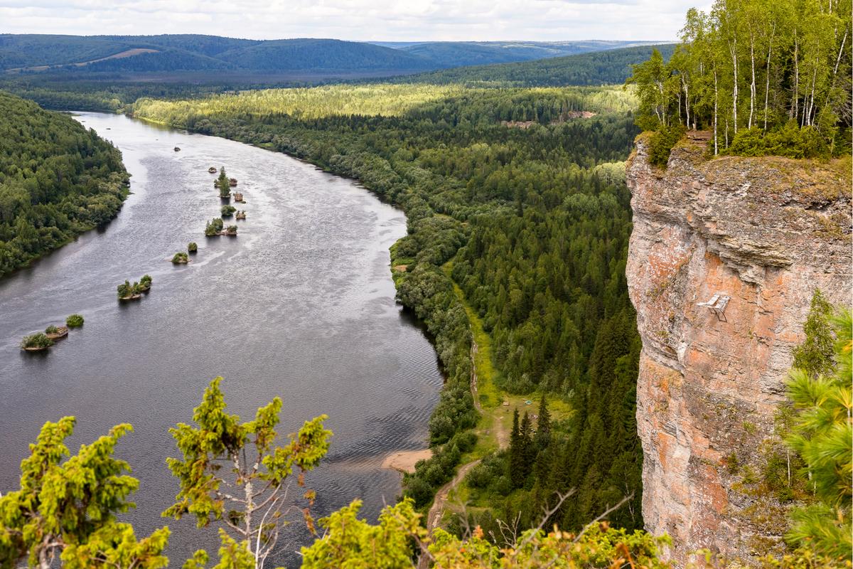 Отвесная стена известняковых утесов на Вишере — одна из самых популярных природных достопримечательностей северного Урала. Система скал возвышается над рекой на 100 м, а ширина обрыва достигает 1750 м. У подножия гора начинается не сразу. Первые 40-50 м от воды занимает пологий склон, что создает естественный бастион с двумя ярусами.