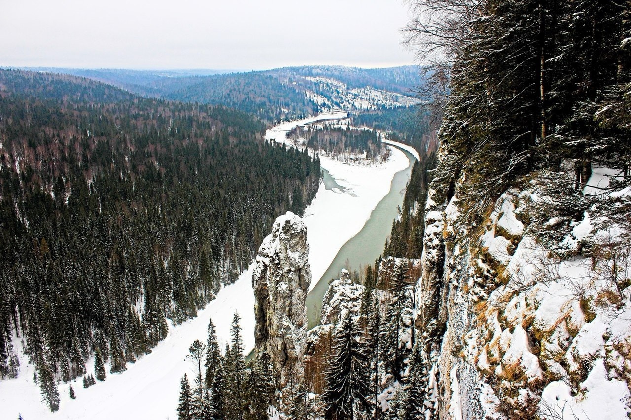 По правому берегу реки Усьвы, в 5 км от одноименного поселка, возвышаются известняковые утесы со знаменитым Чертовым Пальцем — 70-метровой скалой на узком основании. Столбы давно стали Меккой для скалолазов и режиссеров: здесь снимались «Время первых» и «Географ глобус пропил», а на вершину ведут несколько альпинистских маршрутов.