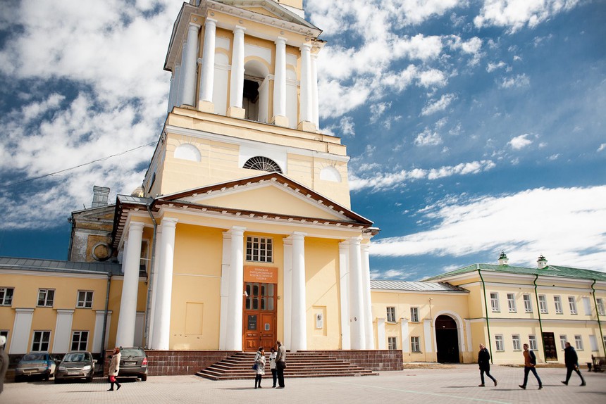Дом с колоннами построен в начале девятнадцатого века как первый в городе клуб для высшего общества. Здесь проводили концерты и вечера для дворян и чиновников, а в гостинице клуба останавливался, например, Антон Чехов. До 2022 года в здании располагался клуб УВД. Сейчас особняк передан городу и после реставрации в нём откроется культурное пространство.