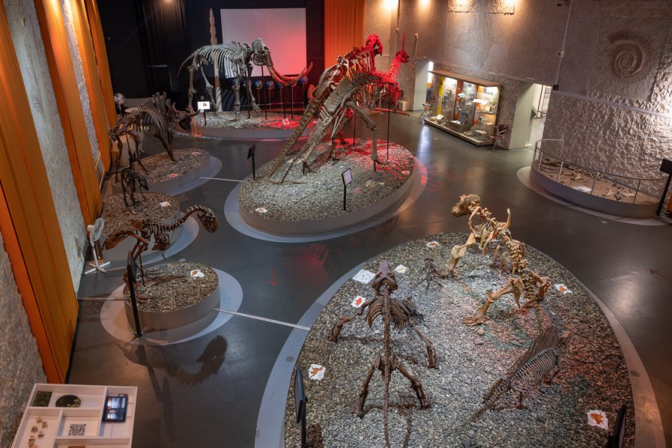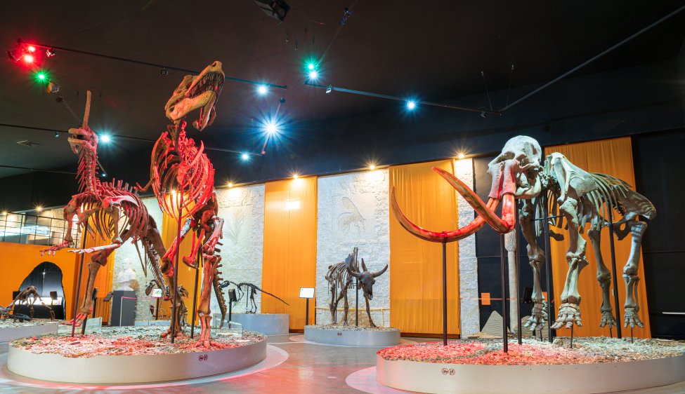 В музее можно увидеть скелеты ящеров пермского периода и животных более поздних эпох: тарбозавра — гигантского хищного динозавра, который жил в меловом периоде; небольшого хищника дейнониха — у него было по одному огромному когтю на задних лапах; диатримы — хищной нелетающей птицы размером со страуса; древнего бизона. Но это копии. А вот мамонт, который 40 тысяч лет назад утонул в болоте и там «законсервировался» — настоящий и в отличном состоянии.