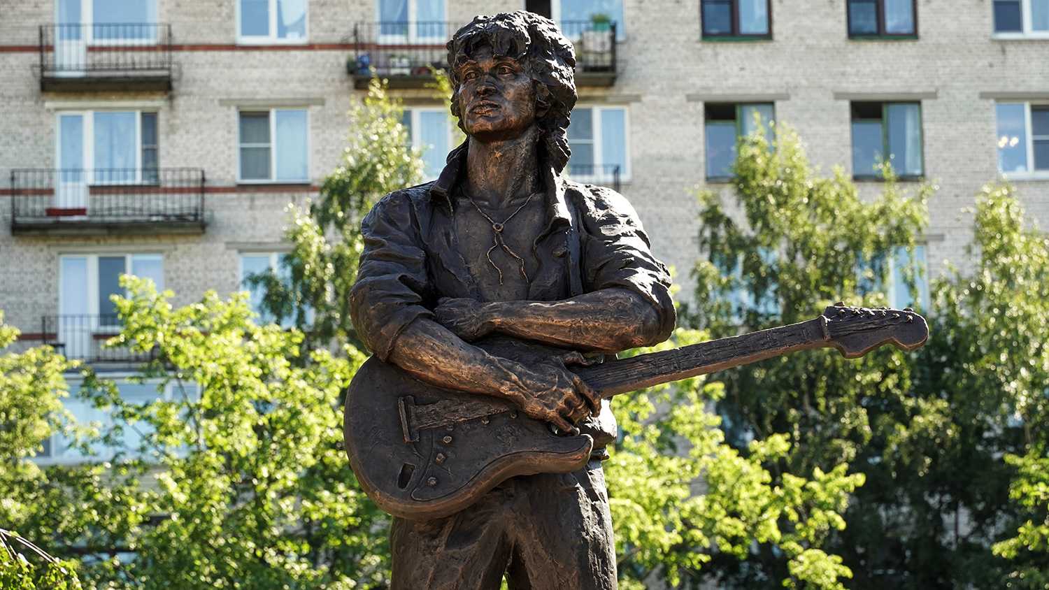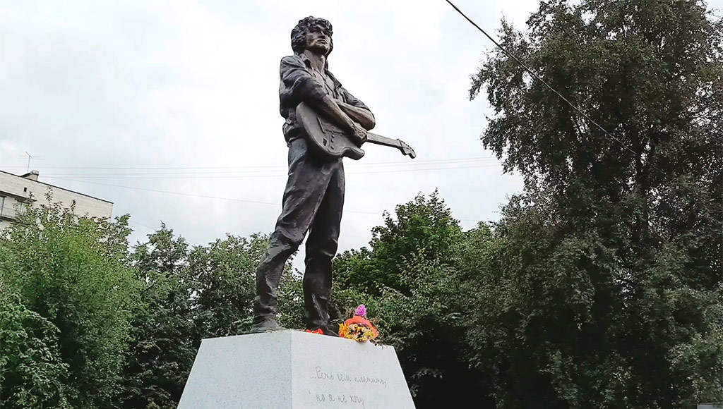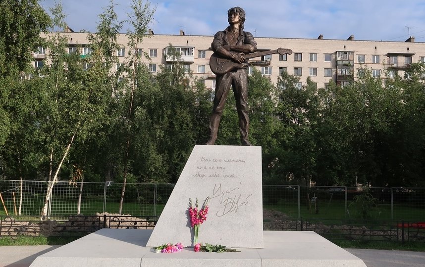 Памятник Виктору Цою установлен в Санкт-Петербурге на проспекте Ветеранов, рядом со школой, где учился музыкант и домом, где он жил. Бронзовая скульптура высотой 3 метра, весом 1,2 тонны изображает Цоя с гитарой, воссозданного по известной фотографии. На постаменте выгравирована строка из песни «Группа крови». Открытие памятника приурочено к 30-летию гибели музыканта. Памятник считается местом паломничества поклонников творчества легендарного рок-музыканта.