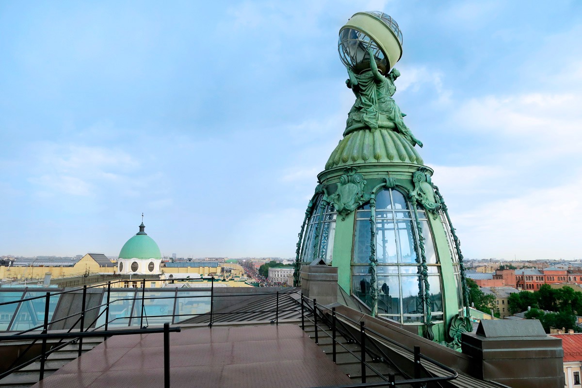 Санкт-Петербург в 1904 году был шокирован самым высоким светским зданием города на Невском проспекте, принадлежащим этому же владельцу. Собственнику и архитектору Павлу Сюзору удалось обойти полуторавековой запрет: «Не строить дома выше Зимнего дворца». Изобилие растительных орнаментов, драконовых голов, бронзовых скульптур, большой стеклянный купол с фигурами матросов, держащих земной шар на его вершине, отражали успешность владельца компании «Зингер».