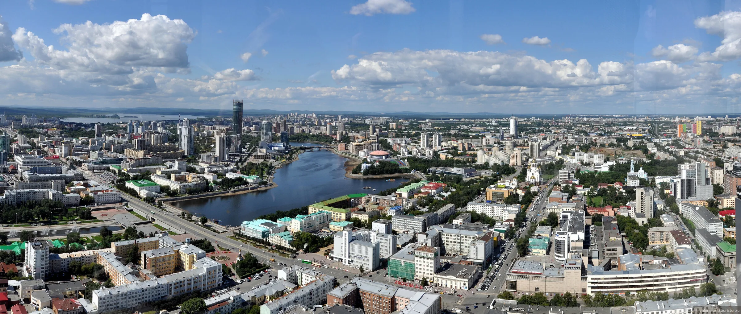Смотровая площадка находится на 52 этаже бизнес-центра, на высоте 186 метров. Отсюда открывается вид на весь город. В ясную погоду панорама простирается вдаль на 25 километров. Можно увидеть историческую застройку, основные магистрали, Исеть, Верх-Исетский пруд и озеро Шарташ, отдалённые районы и пригороды.