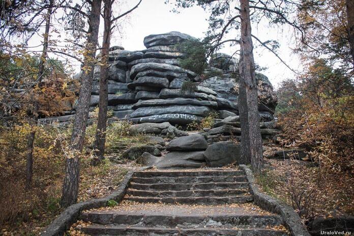 Один из живописных и монументальных памятников природы в черте города Екатеринбурга. Их отличает матрацевидная форма, возникшая в результате действия ветра, воды, температуры. Скалы вытянуты в меридиональном направлении на 80—100 м, относительная высота составляет 10—20 м. Высота над уровнем моря — 299 метров, а над уровнем озера Шарташ — 24 метра. Общая площадь природного памятника составляет 2 га. Относятся к Шарташскому гранитному массиву, возраст которого 300 миллионов лет.