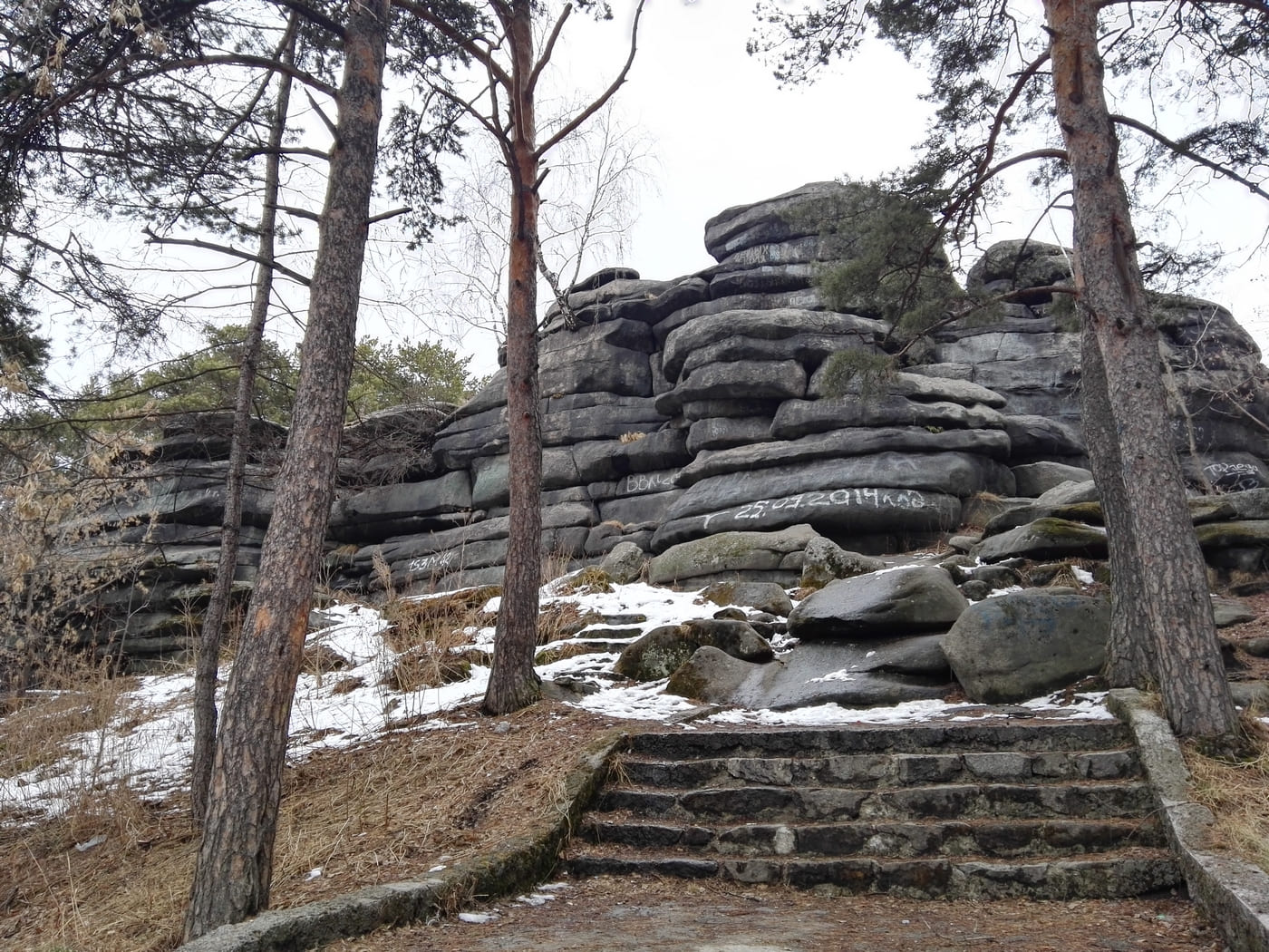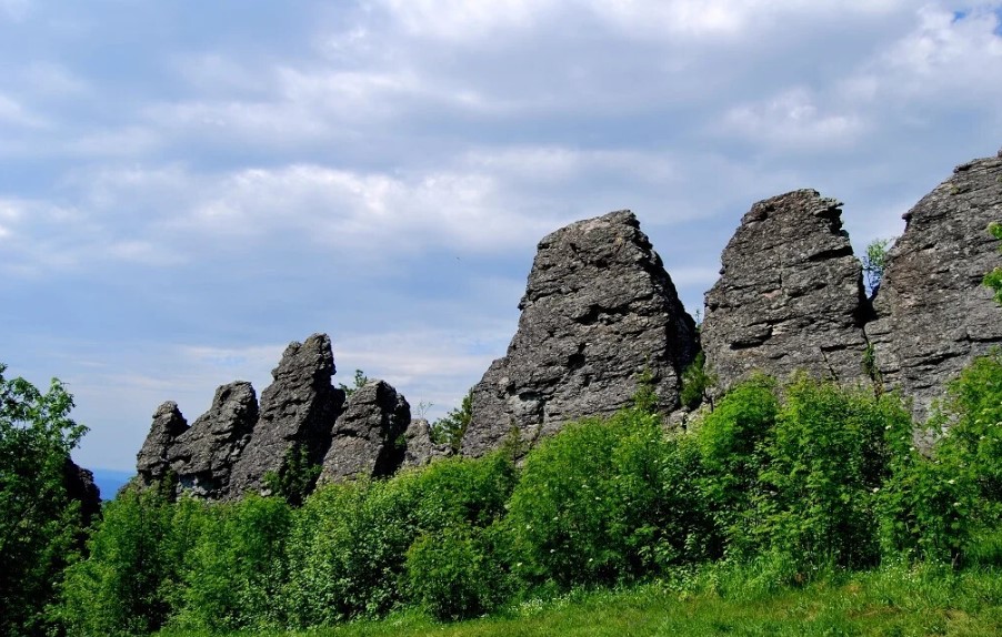 Высота горы 347 метров над уровнем моря. Со всех сторон имеет пологие склоны и полностью покрыта лесом. Скалы находятся на вершине покрытого лесом увала и представляют собой складчатый каменный гребень высотой до 34 метров из отдельных массивных башен, возвышающихся на сложенном из гранитных плит постаменте. Гряда в длину достигает 70 метров и вытянута с юго-востока на северо-запад. Северная стена обрывается крутым уступом и представлена отвесными и слабонависающими скалами.
