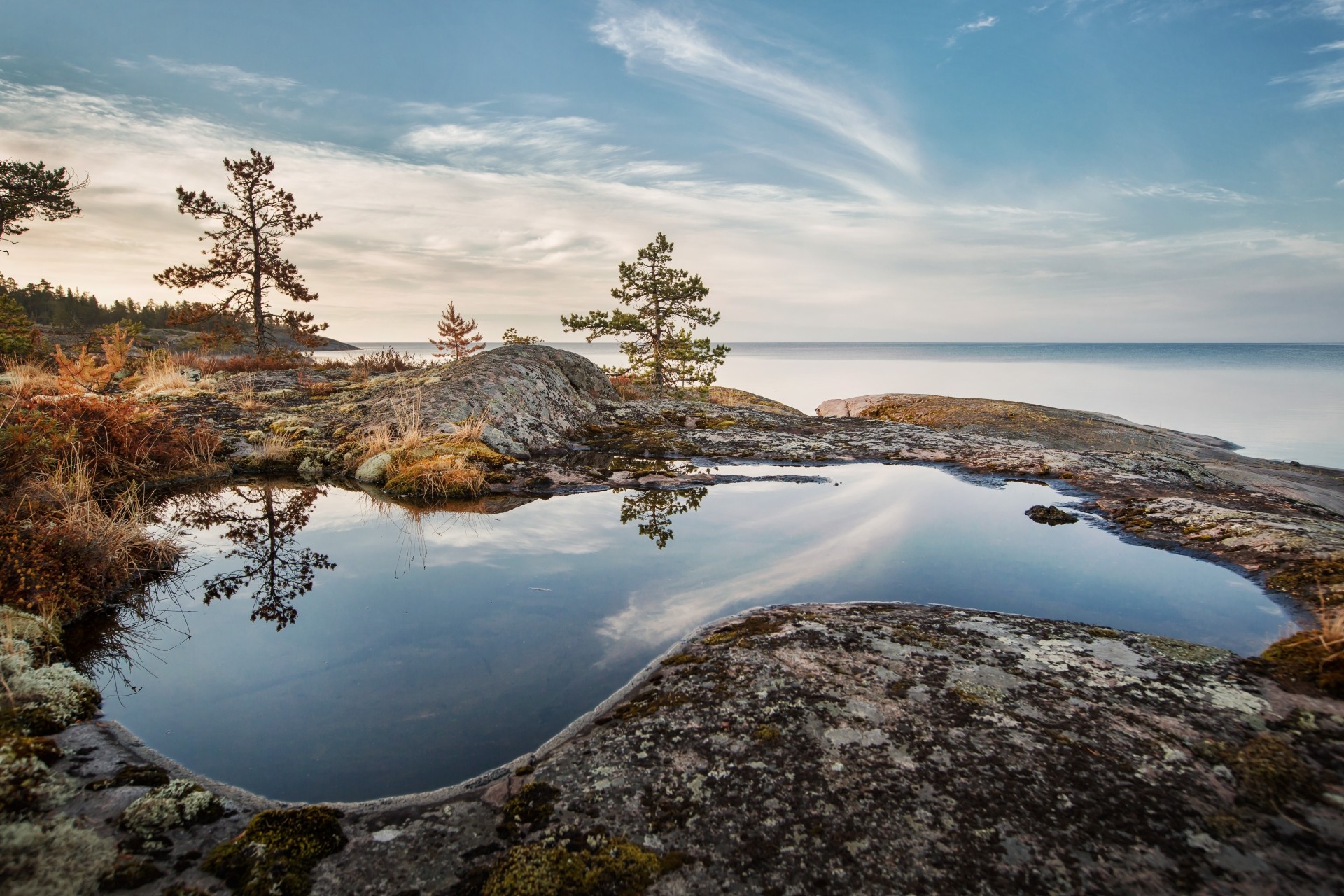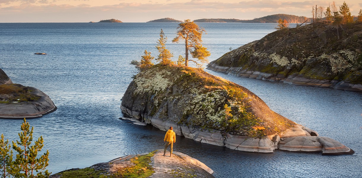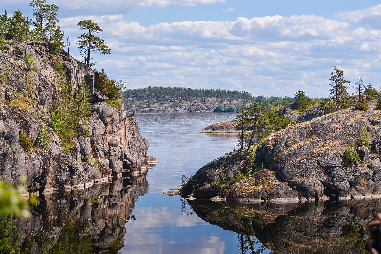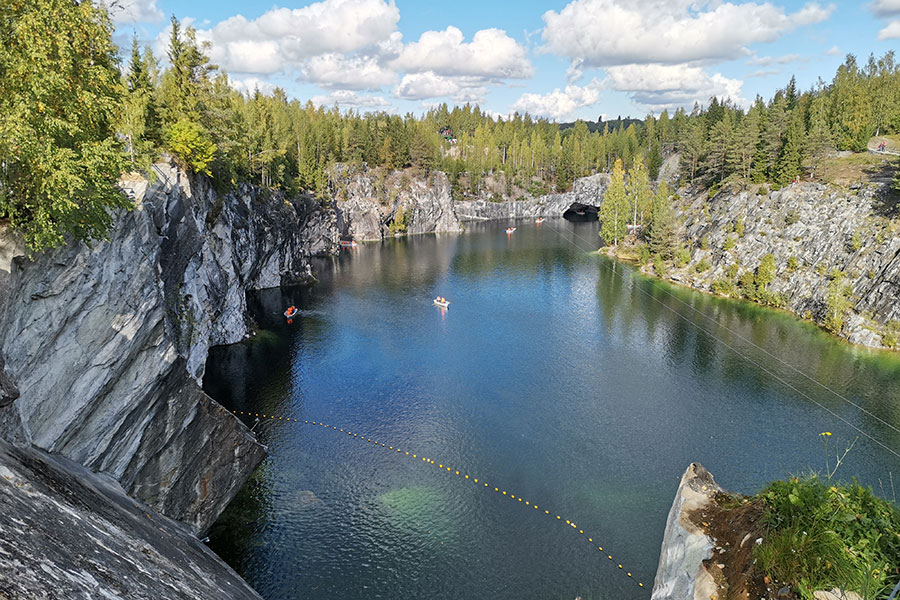 Мраморный каньон Рускеала — это то, что обязательно стоит посмотреть в Карелии. Его длина составляет 456 метров, ширина — 109 метров. Бывшие штольни стали живописными гротами с залами, арками и колоннами. В некоторые из них можно попасть, лишь нырнув с аквалангом, по другим туристы свободно гуляют пешком. Большинство гротов спрятаны под водой или частично затоплены. Чтобы взглянуть на них, лучше арендовать лодку. А в холодное время года после захода солнца скалы красиво подсвечиваются.