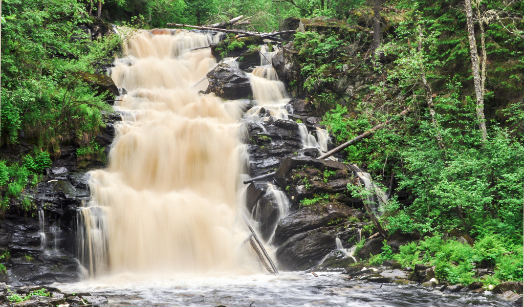 Водопад Кивач на реке Суна — жемчужина Карелии. В переводе с финского название означает «мощный, стремительный». Низвергаясь с 11-метровой высоты, потоки воды преодолевают четыре уступа. Примерно посередине каменная глыба разбивает «водяную лестницу» на два русла. Грохот падающей воды разносится по окрестностям на сотни метров.