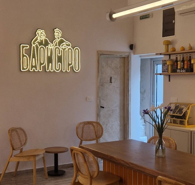 Šarlo makes sourdough bread, brioches, tartines and sandwiches. You can have a good coffee with them and in the evening have a glass of natural wine or a bottle of craft beer.