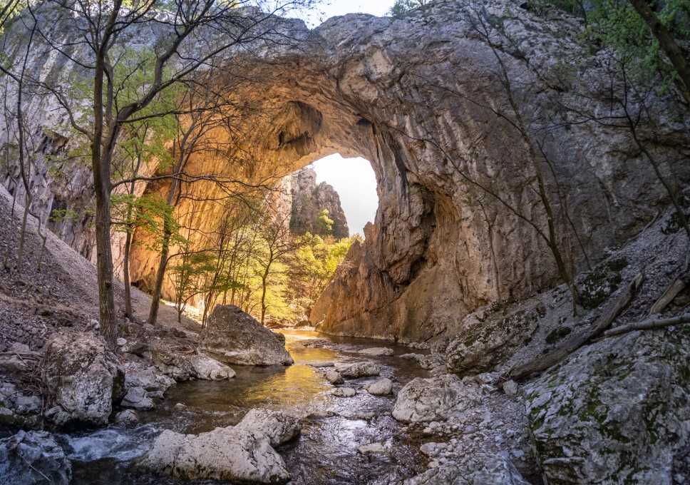 Vratna Gates are three natural stone bridges on the Miroč mountain, two in the vicinity of the medieval Vratna monastery, and the third farther away into the depths of the Vratna river gorge, in Bor, eastern Serbia. Stone gates of this type are rare. Similar ones can be found in Slovenia, France and in Colorado, in the United States. It has been declared a geomorphological natural monument and placed under the state protection in 1957.
