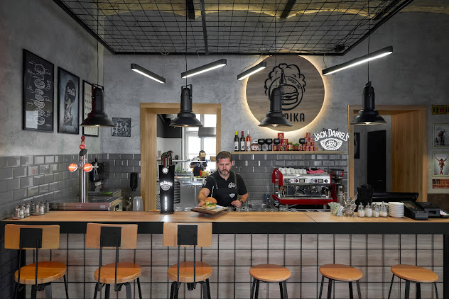 Fabrika Burger & Pizza Bar in Subotica specializes in Neapolitan-style pizzas (certified dough, 450–520 °C ovens) and a range of gourmet burgers made from 100% beef, house sauces, fresh brioche buns, salads, and finger foods. With open pizza kitchen, pet‑friendly indoor/outdoor seating, and delivery available, it's known for its quality ingredients, cozy industrial ambiance, and inventive menu.