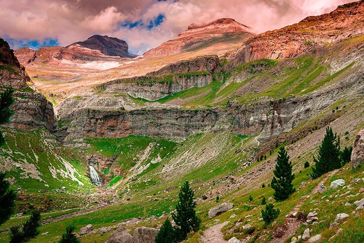 The main attraction of the park is the Ordesa Canyon. It impresses with huge rocks hanging on both sides of the mountain path. The river of the same name flows along the bottom of the canyon. The lower part of the park is represented by dense forest, where you can meet many representatives of forest fauna. There are many waterfalls that cascade one after another.