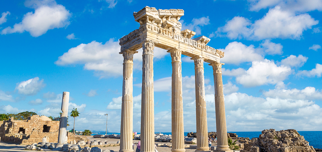 The Temple of Apollo is an ancient Greek temple located in Side, Turkey, dedicated to Apollo, the god of the sun, music, and prophecy. Dating back to the 2nd century BC, the temple features impressive Doric columns standing on a raised platform, offering panoramic views of the surrounding landscape and the Mediterranean Sea.
