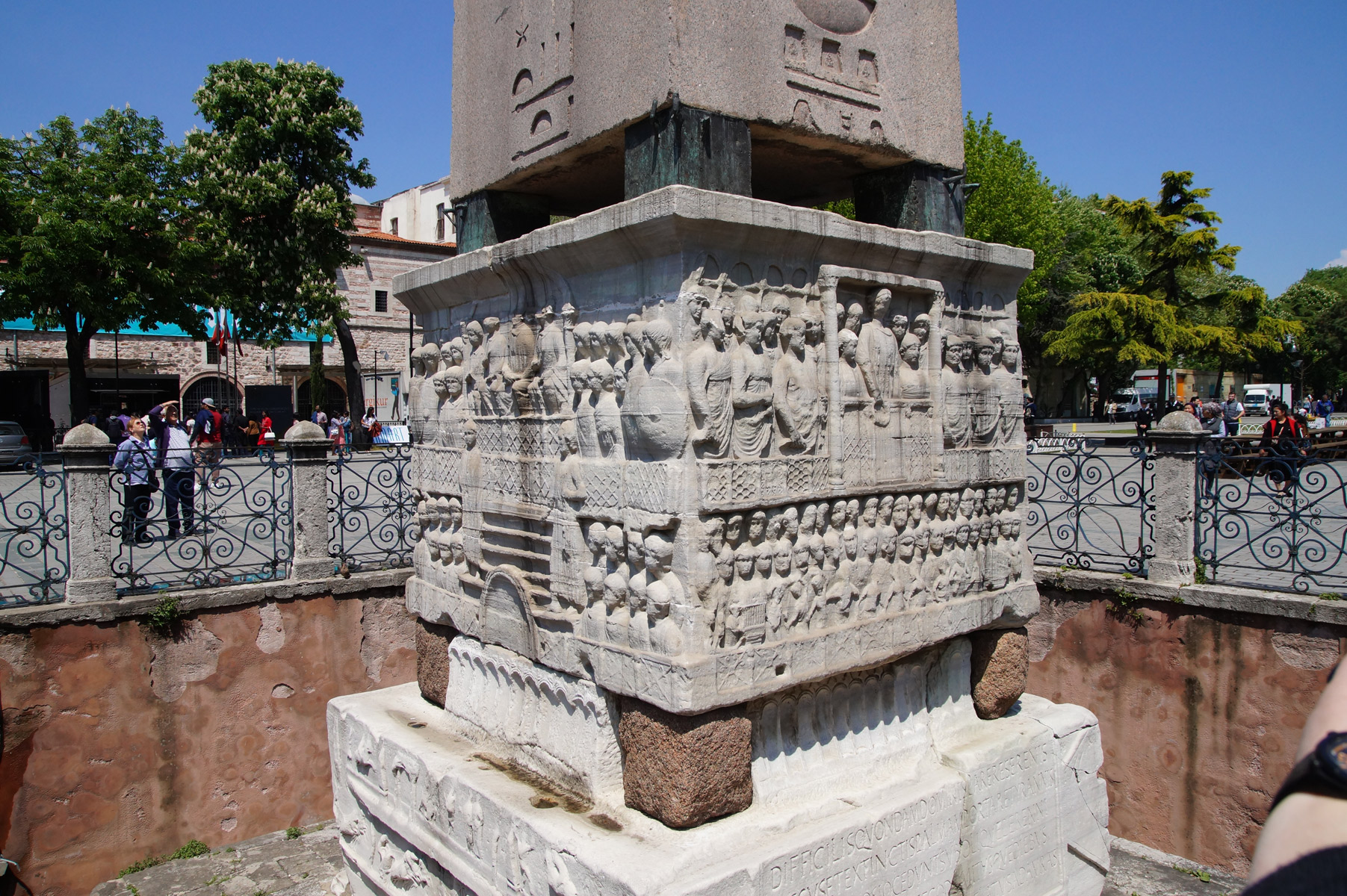 The Obelisk of Theodosius is an ancient Egyptian obelisk dating back to the 15th century BC, originally erected in the city of Karnak (Luxor) under Pharaoh Thutmose III. In the 4th century AD, it was transported to Constantinople (modern-day Istanbul) by order of Roman Emperor Theodosius I and placed in the Hippodrome of Constantinople. Standing at about 35 meters tall, the obelisk is one of the oldest surviving monuments in Istanbul and is carved from a single block of red granite.