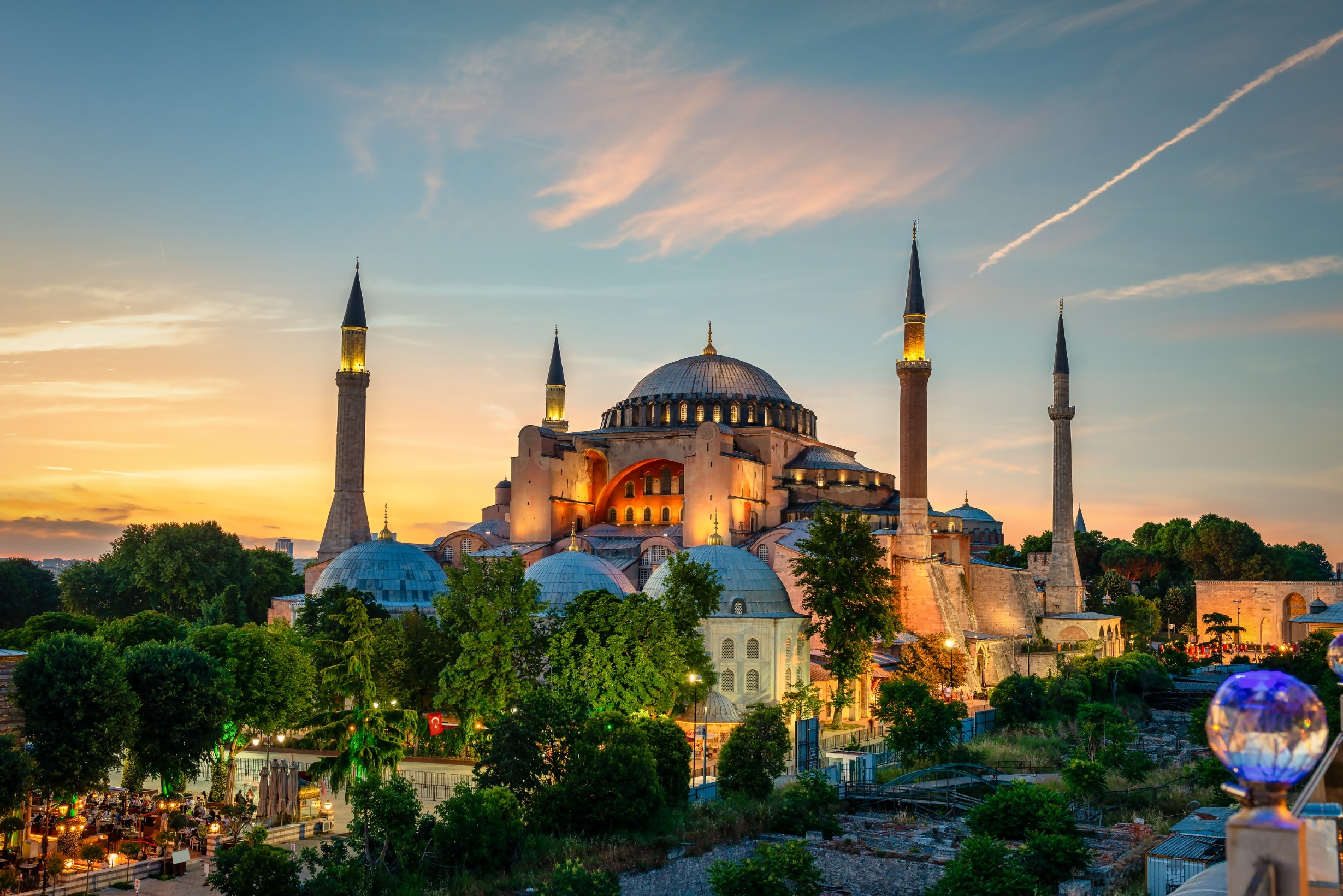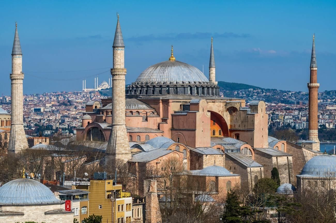 The Hagia Sophia Grand Mosque, located in Istanbul, Turkey, is a historic architectural masterpiece originally built as a cathedral in the 6th century under the Byzantine Emperor Justinian I. Converted into a mosque after the Ottoman conquest and later transformed into a museum, it was reclassified as a mosque in 2020 while preserving its rich cultural and religious heritage. The structure is renowned for its massive dome, intricate mosaics, and stunning blend of Christian and Islamic artistry.