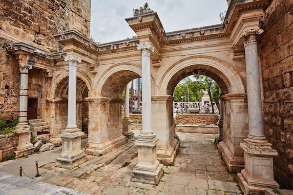 Hadrian's Gate, also known as Üç Kapı (Three Gates), is a historic triumphal arch located in the old town of Antalya, Turkey. Built in the 2nd century AD during the reign of Emperor Hadrian, it once served as the grand entrance to the ancient city of Attaleia. The gate features three large archways and decorative columns, reflecting Roman architectural style.