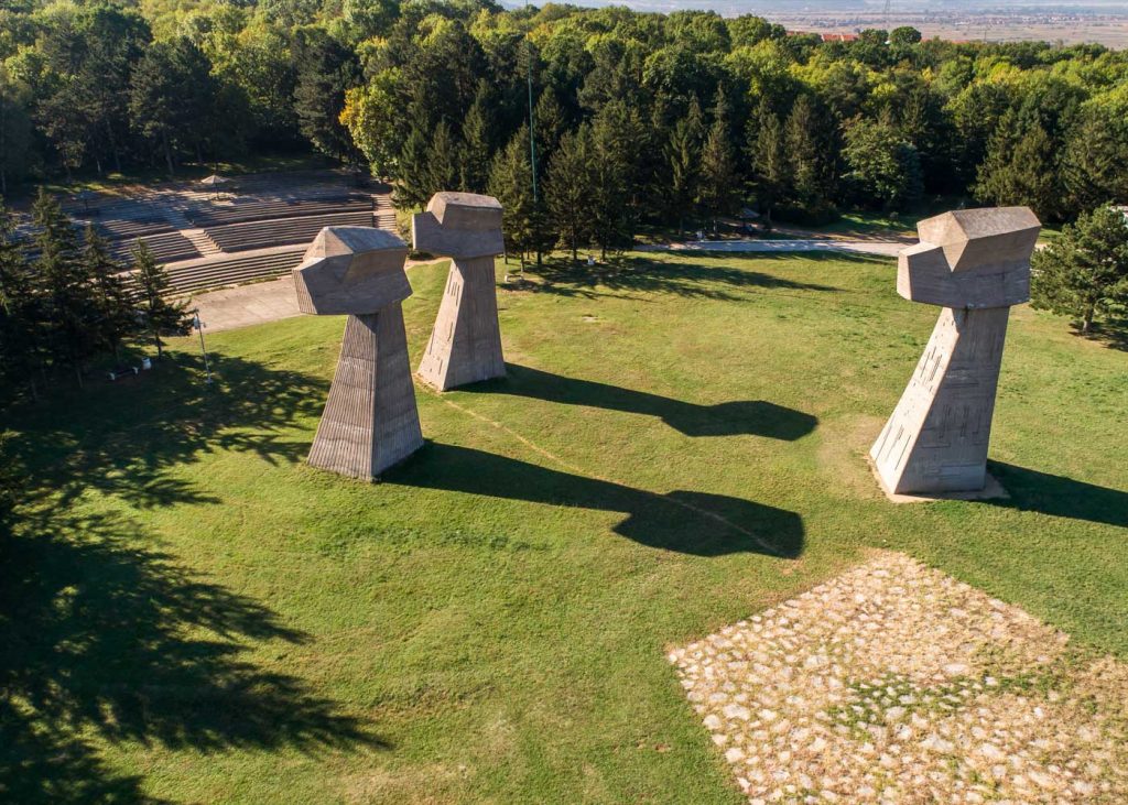 Serbia's master of striking memorials erected a forgotten, hidden gem in the hills outside a tiny village. Dedicated to the fighters of WWII's Trstenik's NOP Detachment and the troops of the Kraljevačkog Detachment, Popina Memorial Park consists of a series of giant stones – some shaped like pyramids, others like smooth arches – all with holes seemingly blasted through their centers.