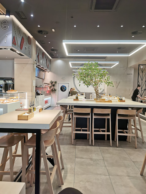 Vega Food Store in Kragujevac is a stylish hybrid bakery-restaurant located on Trg Svetog Đorđa. Open early until late night, it features a light-filled interior, open bakery counter on the ground floor and a modern restaurant space above. The menu includes breakfast items, salads, fast-food classics, meat dishes, pizzas, pasta, and desserts—plus delivery service. Clean design and diverse offerings make it ideal for both quick bites and relaxed meals.